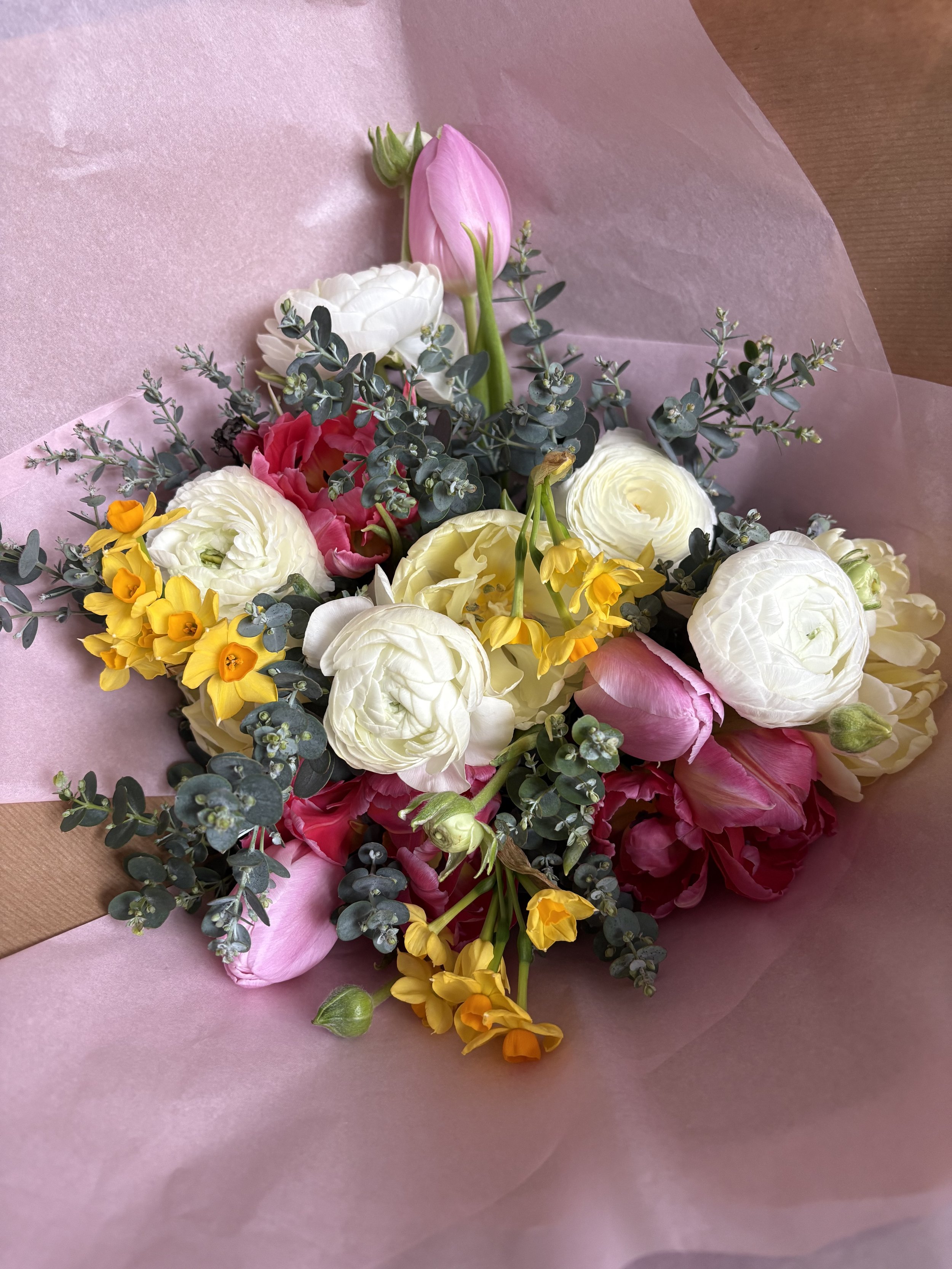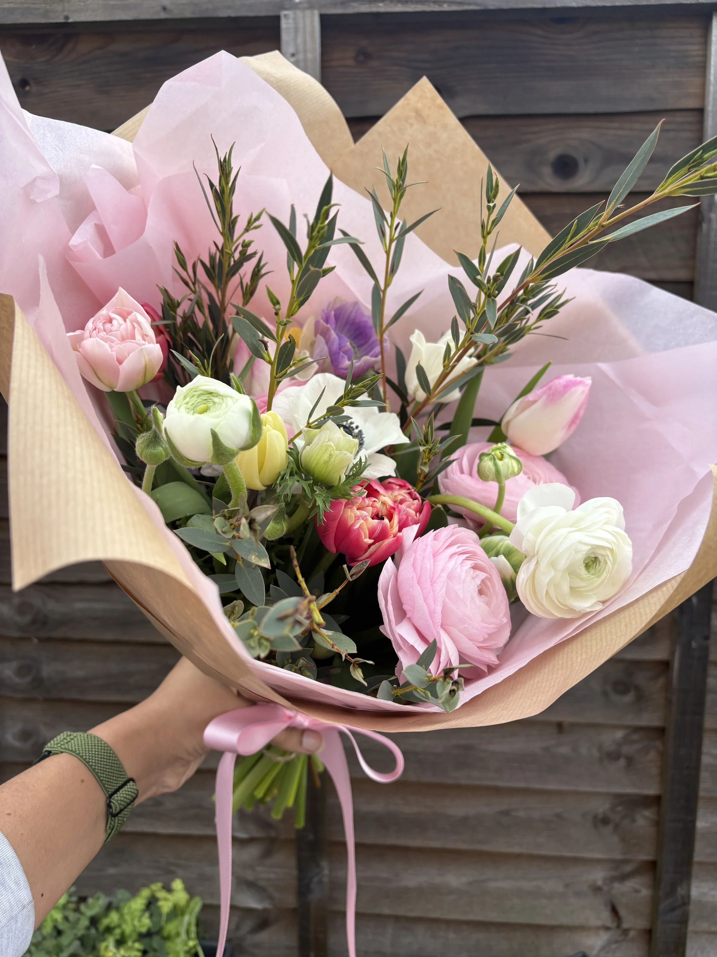 Our designs are natural and garden-inspired, with flowers chosen for the season rather than a fixed recipe. This means every order is unique, seasonal and full of character.