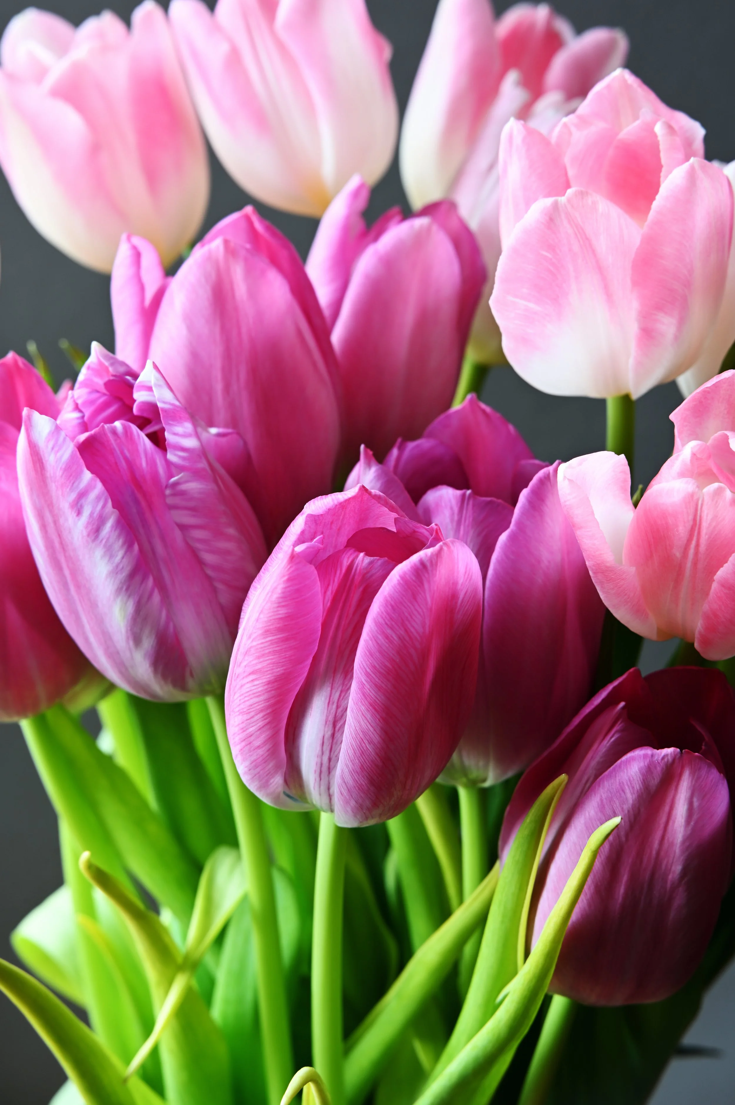 Our showstopper. A lush, hand-tied bouquet of tulips, seasonal stems, and textured foliage, beautifully wrapped. This is the one for making her day.